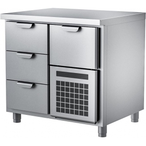В комплектацию стола входят 3 ящика и 1 ящик над холодильным агрегатом. Все детали корпуса изготовлены из нержавеющей стали.