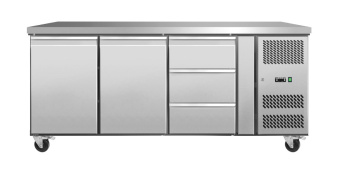 Стол холодильный Koreco GN/3100TNL2D3 островной с 2 дверьми GN1/1, с 3 ящиками