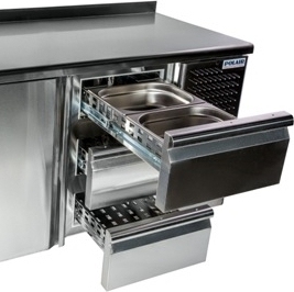 Стол холодильный POLAIR TM3GN-333-G борт используется для обработки, разделки/раскатки, хранения продуктов питания в охлажденном виде на предприятиях общественного питания и торговли.