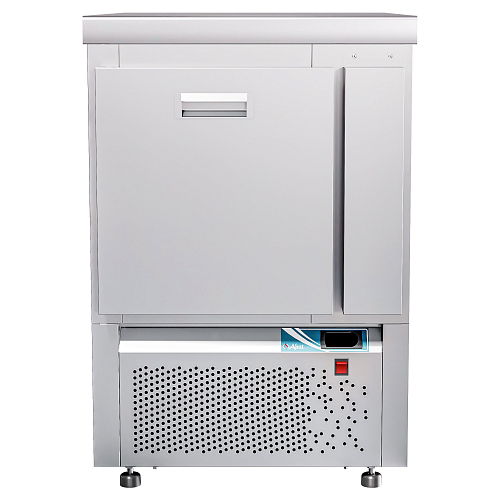 Модель оснащена неохлаждаемой рабочей поверхностью, ящиком и регулируемыми по высоте ножками. Цельнозаливной корпус выполнен из высококачественной нержавеющей стали AISI 202 c пенополиуретановой изоляцией.