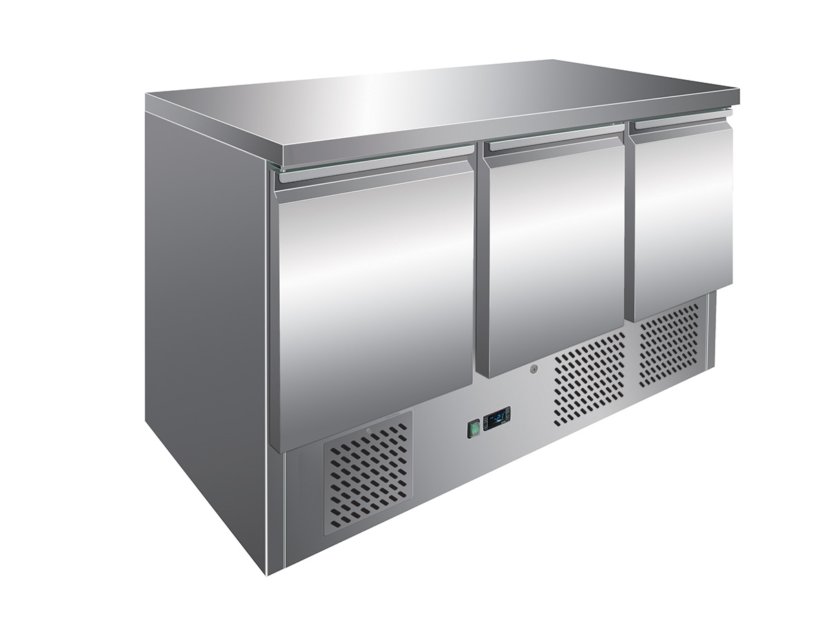 Стол холодильный VIATTO S903SEC S/S TOP предназначен для раскатки теста и обработки ингредиентов для приготовления блюд, охлаждения и кратковременного хранения продуктов и напитков на предприятиях общественного питания и торговли. Модель оснащена 1 полкой и 1 парой направляющих GN 1/1 в каждой секции.