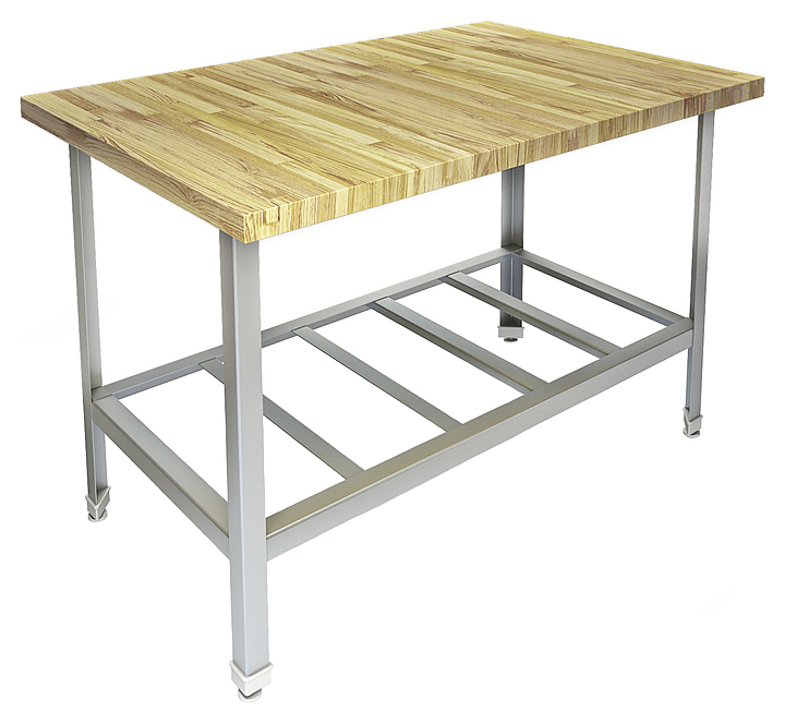 Стол кондитерский KAYMAN СЦ-355/0808 используется для приготовления кондитерских и хлебобулочных изделий, а также как дополнительное место для установки и хранения кухонных приборов, инвентаря и сухих продуктов на предприятиях общественного питания и торговли. Каркас выполнен из оцинкованного уголка толщиной 1,5 мм, столешница - из бука толщиной 40 мм..