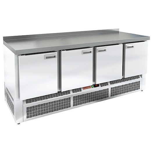 Морозильный стол с нижним расположением агрегата HICOLD GNE 1111/BT W выполнен из оцинкованной стали с полимерным покрытием (RAL 9006). Верх стола накрыт столешницей из нержавеющей стали марки AISI-304. Пространство между внутренней и наружной стенкой заполнено пеной-теплоизолятором. Морозильный стол HICOLD GNE 1111/BT W имеет четыре дверки для доступа в пространство полезного объема. Внутри стола расположен воздухоохладитель с вентиляторами, которые обеспечивают равномерное и быстрое распределение холодного воздуха внутри полезного объема стола. В полезном объеме предусмотрены полки-решетки для укладки продуктов в герметичной упаковке. Полки, направляющие полок и стойки выполнены по стандарту GN – полная совместимость с комплексом профессионального кухонного оборудования. Нагрузка до 50 кг на каждую полку.