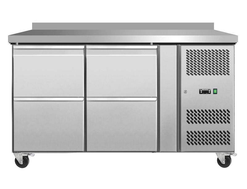 Стол морозильный Koreco GN/2100BTD4/W пристенный с 4 ящиками предназначен для обработки ингредиентов и кратковременного и длительного хранения предварительно замороженных пищевых продуктов на предприятиях общественного питания и торговли. Модель оснащена расположенным справа встроенным холодильным агрегатом, 2 холодильными секциями и колесами с системой блокировки. Теплоизолированный корпус выполнен из высококачественной нержавеющей стали марки AISI 201.