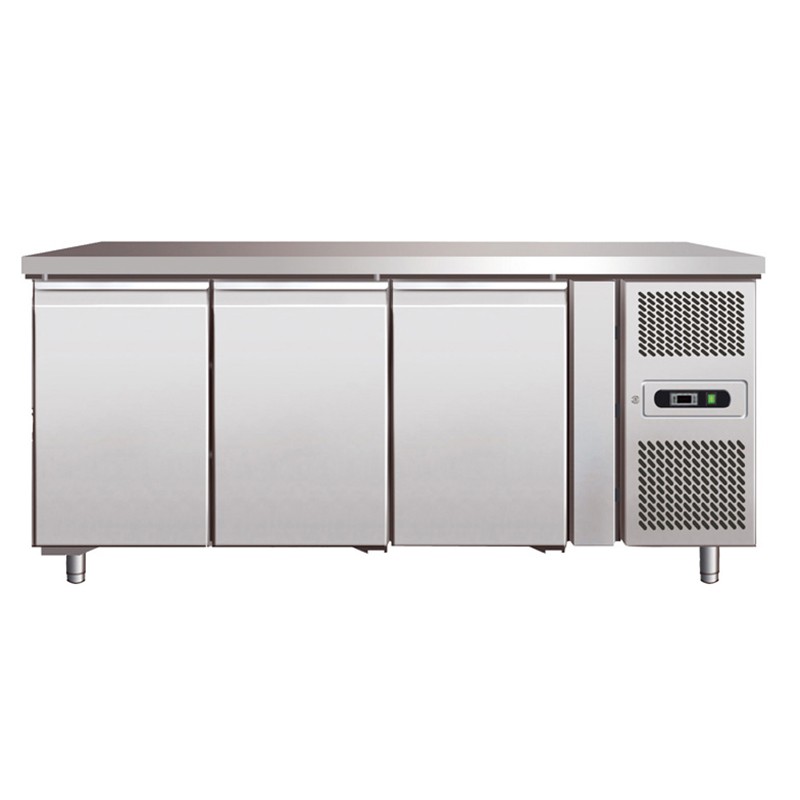 Стол охлаждаемый FORCAR GN3100BT предназначен для долговременного хранения пищевых продуктов и полуфабрикатов, а также обработки ингредиентов для приготовления блюд, размещения кухонной утвари и оборудования на предприятиях общественного питания и торговли. Модель оснащена 3 дверями для доступа в пространство полезного объема и удобной в использовании электронной панелью управления. Стол выполнен из нержавеющей стали AISI 304.