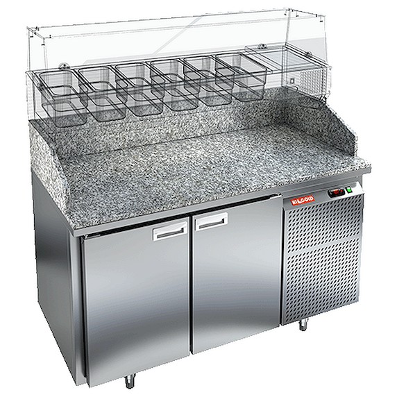 Стол охлаждаемый для пиццы HICOLD PZ3-11/GN (без витрины) камень пользуется на предприятиях общественного питания и торговли для раскатки теста и обработки ингредиентов, используемых для приготовления пиццы, салатов и других блюд, а также для охлаждения и кратковременного хранения скоропортящихся продуктов и напитков. Модель совмещает в себе рабочую поверхность и охлаждаемый объем, что значительно упрощает работу повара, так как все необходимые компоненты всегда находятся под рукой. Корпус выполнен из нержавеющей стали, столешница - из гранита.