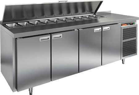 Стол охлаждаемый для салатов HICOLD SL1-1111GN (крышка) используется на предприятиях общественного питания и торговли для хранения и обработки ингредиентов, используемых для приготовления пиццы, салатов и других блюд, а также для охлаждения и кратковременного хранения скоропортящихся продуктов и напитков. Модель совмещает в себе рабочую поверхность и охлаждаемый объем, что значительно упрощает работу повара, так как все необходимые компоненты всегда находятся под рукой. Корпус и столешница выполнены из нержавеющей стали.