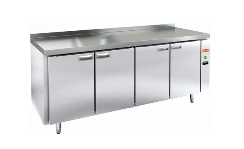 Охлаждаемый стол под выносное хладоснабжение HICOLD GN 1111/TN-W P выполнен из оцинкованной стали с полимерным покрытием (RAL 9006). Верх стола накрыт столешницей из нержавеющей стали марки AISI-304. Пространство между внутренней и наружной стенкой заполнено пеной-теплоизолятором. Охлаждаемый стол HICOLD GN 1111/TN-W P имеет четыре распашные дверки для доступа в пространство полезного объема. В полезном объеме предусмотрены полки-решетки для укладки продуктов в герметичной упаковке. Полки, направляющие полок и стойки выполнены по стандарту GN – полная совместимость с комплексом профессионального кухонного оборудования. Нагрузка до 50 кг на каждую полку.