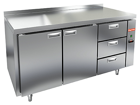 Охлаждаемый стол под выносное хладоснабжение HICOLD GN 113/TN P выполнен из нержавеющей стали марки AISI-304, которая полностью соответствует санитарным нормам. Верх стола накрыт столешницей. Пространство между внутренней и наружной стенкой заполнено пеной-теплоизолятором. Охлаждаемый стол HICOLD GN 113/TN P имеет две распашные дверки и три выдвижных ящика для доступа в пространство полезного объема. В полезном объеме предусмотрены полки-решетки для укладки продуктов в герметичной упаковке. Полки, направляющие полок и стойки выполнены по стандарту GN – полная совместимость с комплексом профессионального кухонного оборудования. Нагрузка до 50 кг на каждую полку.