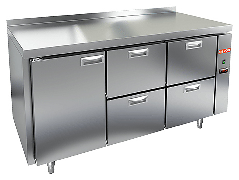 Охлаждаемый стол под выносное хладоснабжение HICOLD GN 122/TN P выполнен из нержавеющей стали марки AISI-304, которая полностью соответствует санитарным нормам. Верх стола накрыт столешницей. Пространство между внутренней и наружной стенкой заполнено пеной-теплоизолятором. Охлаждаемый стол HICOLD GN 122/TN P имеет одну распашную дверку и четыре выдвижных ящика для доступа в пространство полезного объема. В полезном объеме предусмотрены полки-решетки для укладки продуктов в герметичной упаковке. Полки, направляющие полок и стойки выполнены по стандарту GN – полная совместимость с комплексом профессионального кухонного оборудования. Нагрузка до 50 кг на каждую полку.