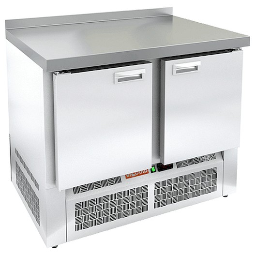 Охлаждаемый стол с нижним расположением агрегата HICOLD GNE 11/TN W выполнен из оцинкованной стали с полимерным покрытием (RAL 9006). Верх стола накрыт столешницей из нержавеющей стали марки AISI-304. Пространство между внутренней и наружной стенкой заполнено пеной-теплоизолятором. Охлаждаемый стол HICOLD GNE 11/TN W имеет две распашные дверки для доступа в пространство полезного объема. Внутри стола расположен воздухоохладитель с вентиляторами, которые обеспечивают равномерное и быстрое распределение холодного воздуха внутри полезного объема стола. В полезном объеме предусмотрены полки-решетки для укладки продуктов в герметичной упаковке. Полки, направляющие полок и стойки выполнены по стандарту GN – полная совместимость с комплексом профессионального кухонного оборудования. Нагрузка до 50 кг на каждую полку.