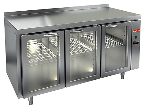 Охлаждаемый стол под выносное хладоснабжение HICOLD GNG 111/HT P выполнен из нержавеющей стали марки AISI-304, которая полностью соответствует санитарным нормам. Верх стола накрыт столешницей. Пространство между внутренней и наружной стенкой заполнено пеной-теплоизолятором. Охлаждаемый стол HICOLD GNG 111/HT P имеет три распашные стеклянные дверки для доступа в пространство полезного объема. В полезном объеме предусмотрены полки-решетки для укладки продуктов в герметичной упаковке. Полки, направляющие полок и стойки выполнены по стандарту GN – полная совместимость с комплексом профессионального кухонного оборудования. Нагрузка до 50 кг на каждую полку.
