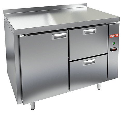 Охлаждаемый стол под выносное хладоснабжение HICOLD SN 12/TN P выполнен из нержавеющей стали марки AISI-304, которая полностью соответствует санитарным нормам. Верх стола накрыт столешницей. Пространство между внутренней и наружной стенкой заполнено пеной-теплоизолятором. Охлаждаемый стол HICOLD SN 12/TN P имеет одну распашную дверку и два выдвижных ящика для доступа в пространство полезного объема. В полезном объеме предусмотрены полки-решетки для укладки продуктов в герметичной упаковке. Нагрузка до 50 кг на каждую полку.