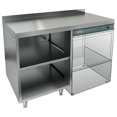 Стол открытый HICOLD НБМСЗОКП-12/6БП предназначен для комплектации барных стоек, оборудован крылом под посудомоечную машину и полкой. Столешница с бортом.