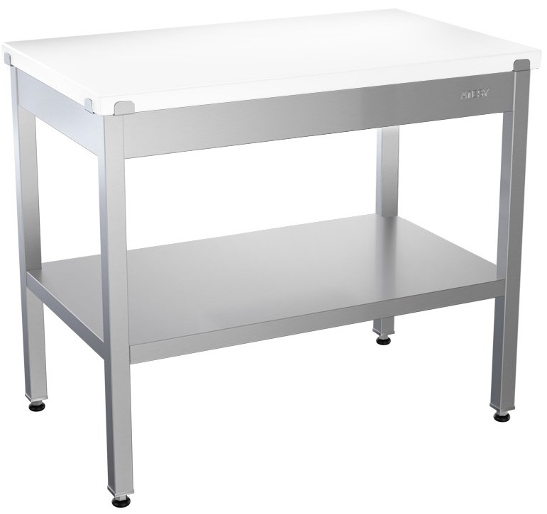 Стол полипропиленовый Atesy СРП-Л-1200.600-02 устанавливается на предприятиях общественного питания и торговли для разделывания и обработки пищевых продуктов, а также в качестве вспомогательной поверхности для кухонного оборудования. Полка из нержавеющей стали AISI 304.