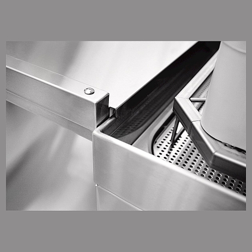 Стол легко крепится к посудомоечной машине с помощью верхнего зацепа и нижних винтов. При этом, его можно крепить к машине как справа, так и слева.