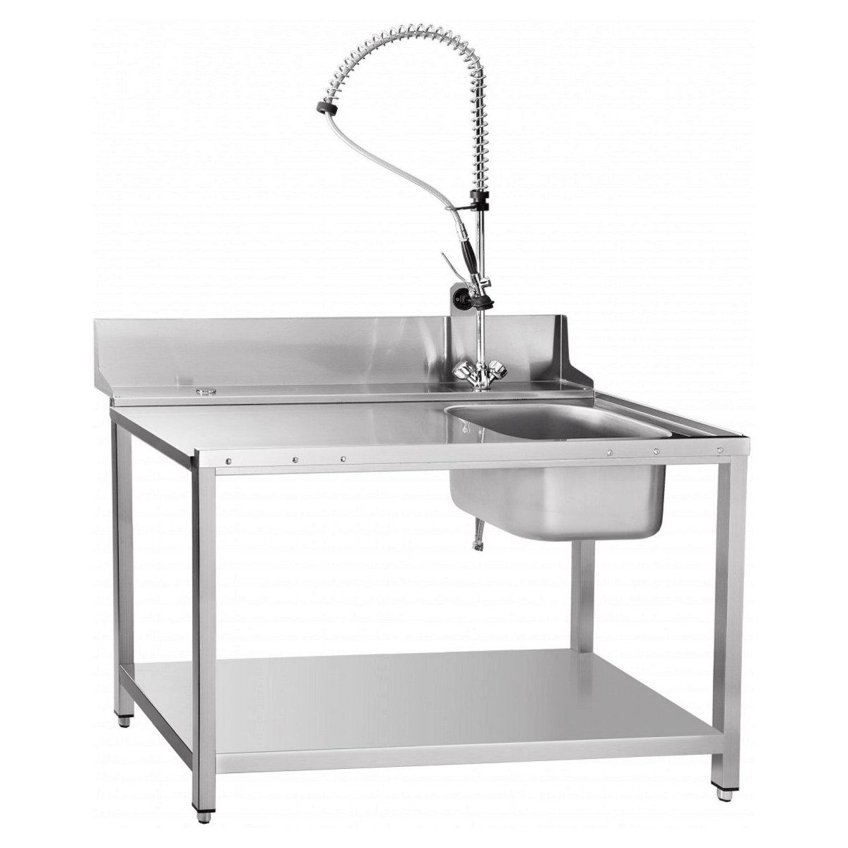 Стол предмоечный СПМП-7-4 (1300х700) для посудомоечной машины МПТ-1700 используется для предварительного ополаскивания грязной посуды перед загрузкой в туннельную посудомоечную машину МПТ-1700.
