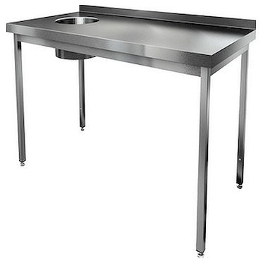 Стол пристенный с бортом HICOLD НДСО-12/6БЛ служит для сбора отходов на предприятиях общепита. Оборудование из нержавеющей стали AISI 430 не впитывает пищевые кислоты, химические добавки и запахи. Стол оборудован отверстием слева, легко подвергается санитарной обработке любыми дезинфицирующими средствами.