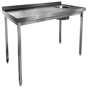 Стол пристенный с бортом HICOLD НДСО-12/6БП служит для сбора отходов на предприятиях общепита. Оборудование из нержавеющей стали AISI 430 не впитывает пищевые кислоты, химические добавки и запахи. Стол оборудован отверстием справа, легко подвергается санитарной обработке любыми дезинфицирующими средствами.