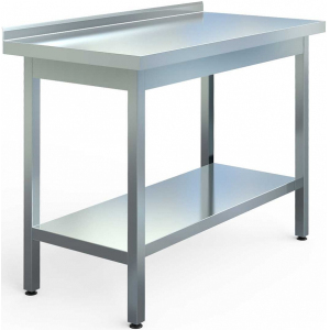 Стол производственный Assum СПБ-П3-16/7 (1600х700х850) сборно-разборный открытый пристенный, серии Премиум-3, с объемным бортом высотой 50мм, цельным со столешницей, оснащён рамкой столешницы (юбкой) из нержавеющей стали AISI 430 толщиной 1мм, сплошной нижней полкой из нержавеющей стали AISI 430 толщиной 0,7мм. Столешница из нержавеющей стали AISI 430 толщиной 0,7мм усилена ламинированной ДСП толщиной 16мм.