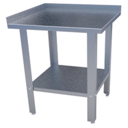 Стол производственный угловой сборно-разборный открытый пристенный, серии Standart, с 2-мя бортами высотой 45мм, столешницей из пищевой шлифованной нержавеющей стали AISI430 толщиной 0,7мм оснащён подложкой из ламинированного ДСП толщиной 16мм, рамкой столешницы из оцинкованной стали толщиной 1,5мм, Z-образными креплениями столешницы из нержавеющей стали толщиной 0,7мм, нижней сплошной полкой из оцинкованной стали толщиной 0,7мм, разборным каркасом из оцинкованного гнутого углового профиля 40х40мм толщиной 1,5мм, регулируемыми по высоте пластиковыми опорами ножек. Максимальная равномерно распределенная нагрузка на столешницу - до 150кг. Ножки отгружаются отдельно.