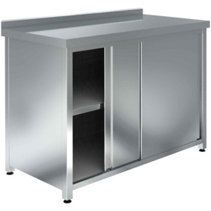 Стол производственный Assum СПКБ-С-12/6 (1200х600х850), закрытый с 4-х сторон, серии Стандарт, с бортом высотой 45мм, дверями-купе, промежуточной сплошной полкой, сварным корпусом - универсальное нейтральное оборудование для профессиональной кухни кафе, столовой, ресторана.