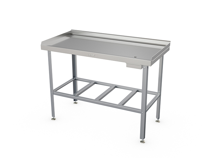 Стол производственный Атеси СМ-С-1200.600-02 (СМ-3/1200/600) предназначен для разделки и последующей обработки мяса. Стол оснащен герметичными бортами, предотвращающими от падения со стола продукта обработки на пол и забрызгивания стен. Под столешницей имеется нержавеющий лоток для сбора жидкости и отходов обработки мяса. Сток жидкости в лоток осуществляется через отверстие в столешнице.