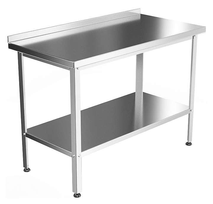 Стол производственный серия Стандарт, 600х600х850, подложка ЛДСП 16 мм, столешница: нерж. сталь марки AISI 430, толщина 0,8 мм, каркас разборный, оцинкованный уголок 1,5 мм, сплошная полка, борт.
