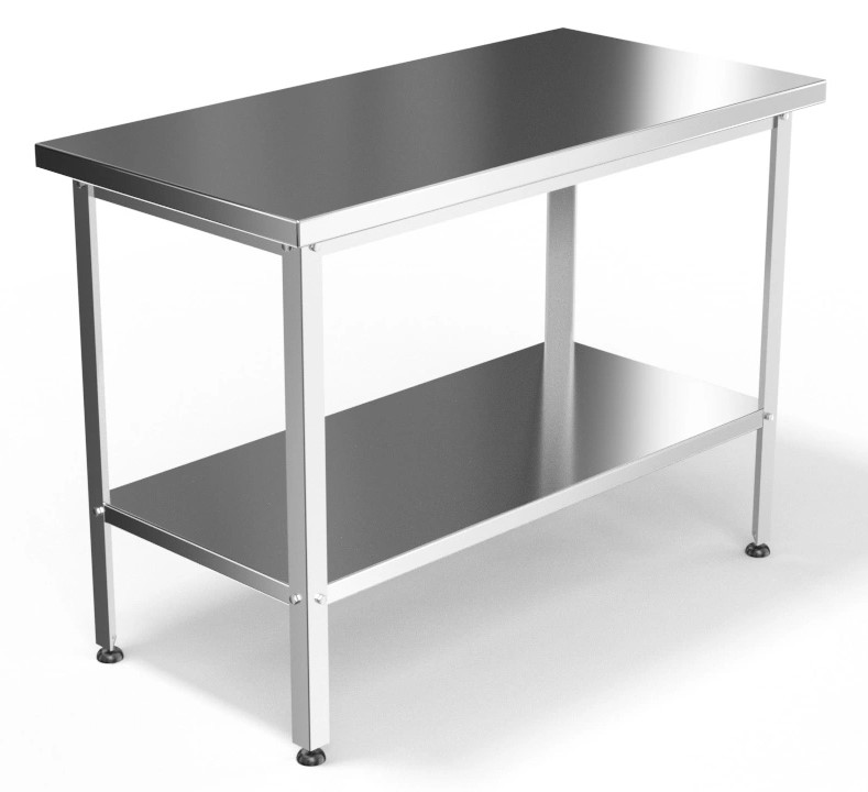 Стол производственный островной серия Стандарт, 1500х600х850, подложка ЛДСП 16 мм, столешница: нерж. сталь марки AISI 430, толщина 0,8 мм, каркас разборный, оцинкованный уголок 1,5 мм, сплошная полка