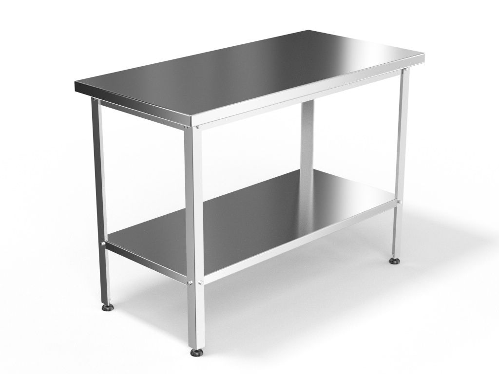 Стол производственный EKSI СПОП 1500/600-с серия Стандарт, 1500х600х850, подложка ЛДСП 16 мм, столешница: нерж. сталь марки AISI 430, толщина 0,8 мм, каркас разборный, оцинкованный уголок 1,5 мм, сплошная полка