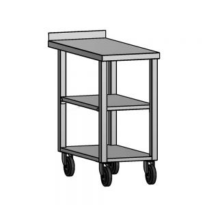 Стол производственный RoboLabs KF049-00-1200 используется в горячих цехах на предприятиях общественного питания и торговли для разделывания и обработки пищевых продуктов, а также в качестве вспомогательной поверхности для кухонного оборудования. Модель оснащена поворотными колесами, 2 передних колеса с тормозами. Столешница выполнена из нержавеющей стали AISI 304.