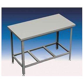 Стол рабочий ТТМ СР-080/6 без борта имеет ножки из оцинкованной стали и полку-решетку.
