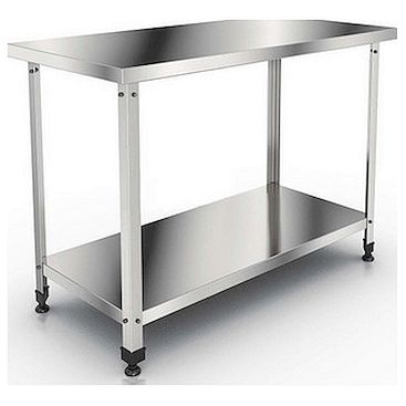 Стол рабочий ТТМ СРН-060/6П без борта имеет ножки из нержавеющей стали и сплошную полку.