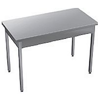 Стол рабочий усиленный ТТМ SR-060/6 с ножками из профильной трубы, без борта, без полки, конструкция разборная, нержавеющая сталь. Ножки регулируются по высоте. Столешница усилена ДСП.