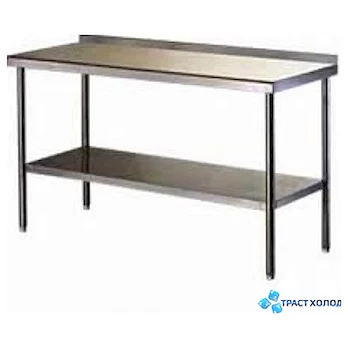 Стол снабжен нижней полкой для хранения кухонного инвентаря. Борт, предотвращающий разбрызгивание жидкостей.