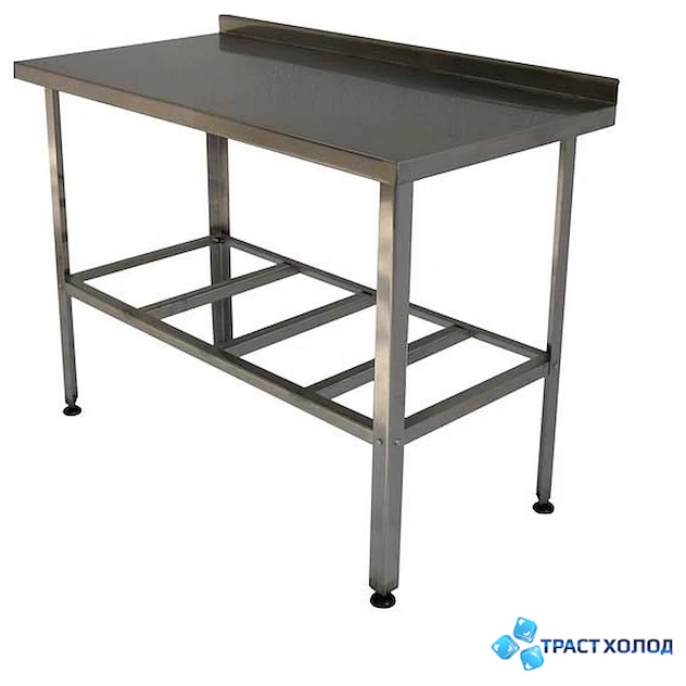 Стол снабжен нижней полкой для хранения кухонного инвентаря. Борт, предотвращающий разбрызгивание жидкостей.