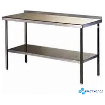 Применение производственного стола дает возможность организовать процесс обработки продуктов и приготовления блюд оптимальным способом. Использованный материал рабочей поверхности – нержавеющая сталь, что делает применение такого стола долговечным. При этом материал корпуса – нержавеющая сталь. толщина металла - 0,8 мм, ножки-уголок.