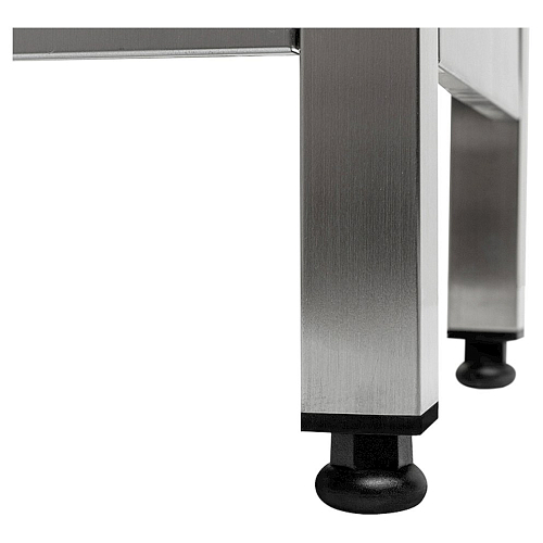 Столешница стола Koбор СПБ-60/60 произведена из высококачественной нержавеющей стали, а также для увеличения прочности и во избежание прогибания укреплена ламинированной древесно-стружечной плитой толщиной 16 мм. Ножки стола регулируются по высоте, что помогает избежать наклона рабочей поверхности стола. Товар поставляется в разобранном виде и в упаковке для облегчения транспортировки.