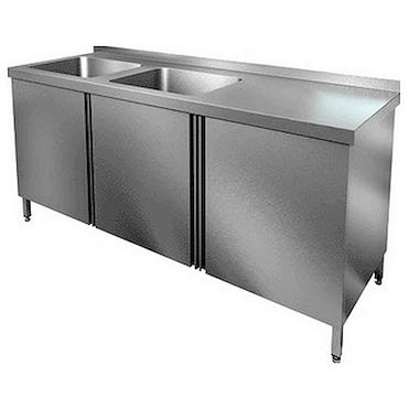 Стол HICOLD НСЗ2М-14/6БЛ служит для мытья тарелок, стаканов, ложек, вилок, кастрюль, сковородок и другой кухонной посуды на предприятиях общественного питания. Оборудование оснащено бортиком, распашными дверцами и двумя моечными ваннами слева.