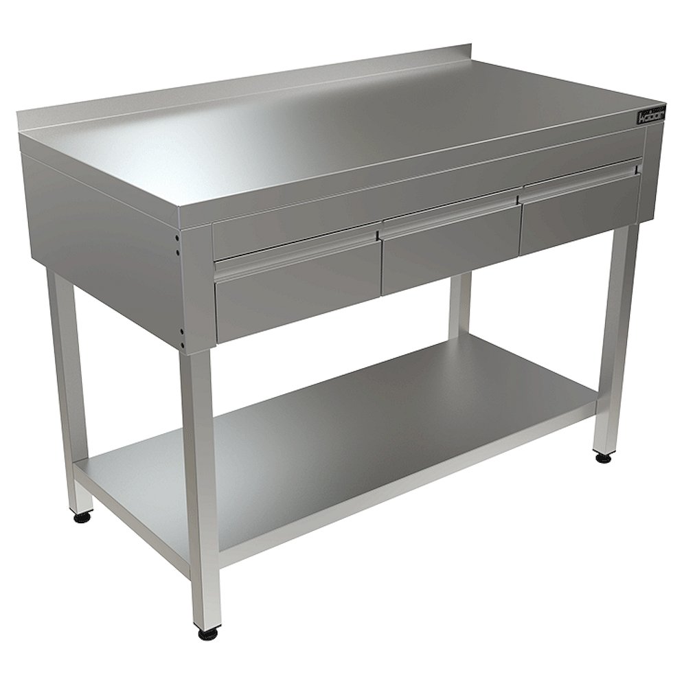 Стол с выдвижными ящиками КОБОР СПБЯ-40/60/П - широко применяется в различных производственных цехах предприятий общественного питания, супермаркетах, комбинатах пищевой промышленности для разделывания и обработки пищевых продуктов, а также в качестве вспомогательной поверхности для кухонного оборудования.