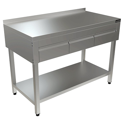 Стол с выдвижными ящиками КОБОР СПБЯ-60/60/П - широко применяется в различных производственных цехах предприятий общественного питания, супермаркетах, комбинатах пищевой промышленности для разделывания и обработки пищевых продуктов, а также в качестве вспомогательной поверхности для кухонного оборудования.