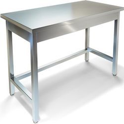 Каркас труба 40х40 мм из нержавеющей стали AISI 430, столешница без борта изготовлена из нержавеющей стали AISI 430 и усиленна ЛДСП, полка из нержавеющей стали AISI 430.