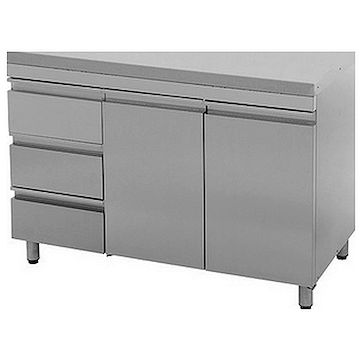 Стол-тумба СТ-С-1200.600-02-Р-3Л (СТ-2/1200/600 с ящиками) может быть использован как обычный разделочный стол, а также для хранения посуды, инвентаря, сухих продуктов, моющих средств и пр.
