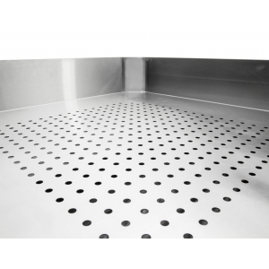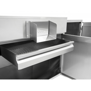 Стол-тумба для попокорн-аппарата ПА72 RoboLabs VPM-PTCPA72 изготовлен из нержавеющей стали, имеет съемный лоток для готовой продукции и поддон для сбора не раскрывшихся зерен.