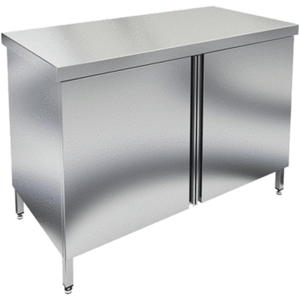 Стол-тумба Hessen (Мартэл) СТРО 15/6 э используется как для работы с продуктами питания, так и для хранения посуды, кухонного инвентаря и сухих продуктов на предприятиях пищевой промышленности, общественного питания, кафе и ресторанах. Столешница из пищевой нержавеющей стали с укреплением из ламинированного ДСП.