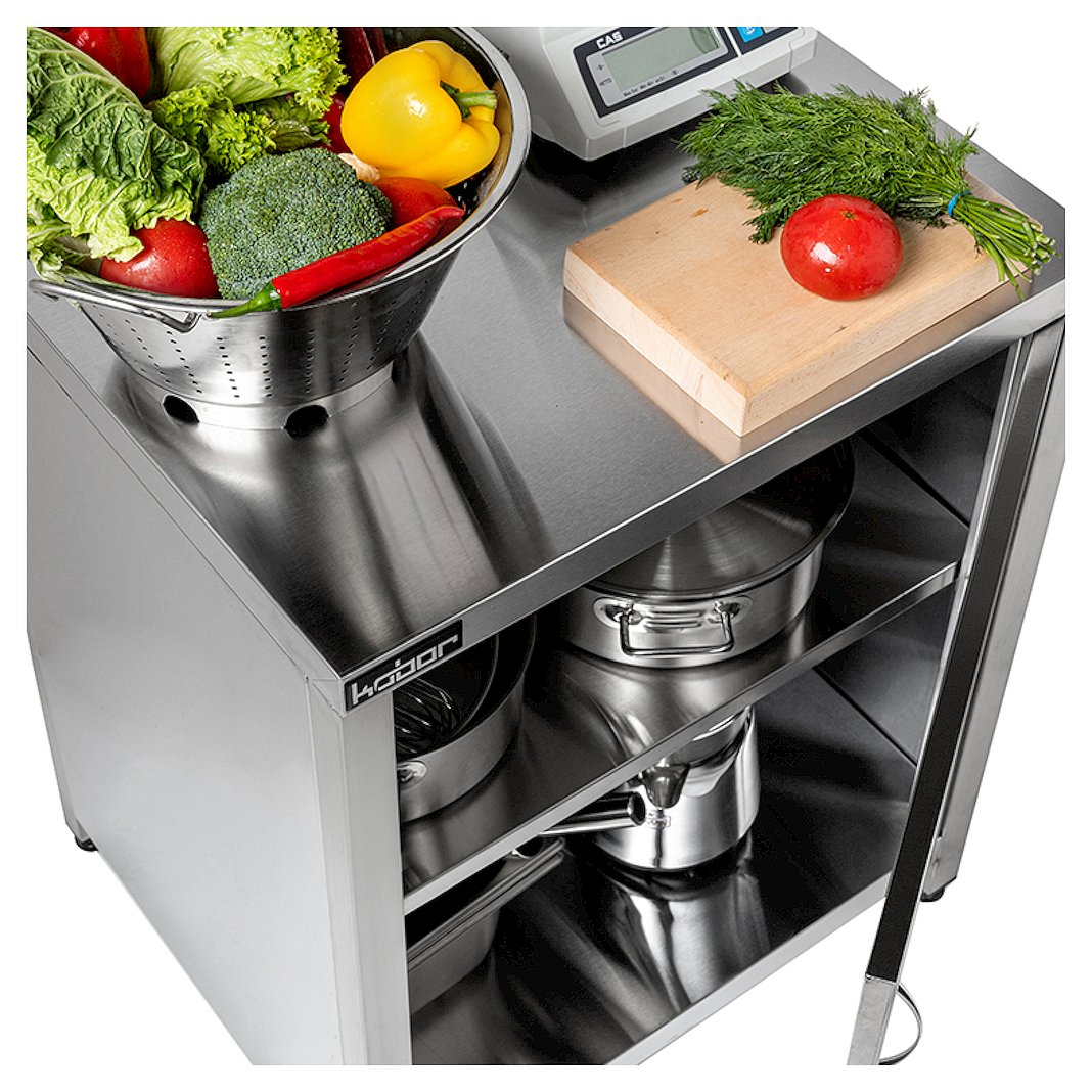 Стол-тумба Кобор СТ/2-40/70 имеет распашную дверь, внутреннюю полку. Стол-тумба произведена из высококачественной стали, что позволяет ее использовать в различных цехах. Столешница укреплена листом ламинированной ДСП толщиной 16 мм, что увеличивает прочность и не допускает прогиб столешницы.