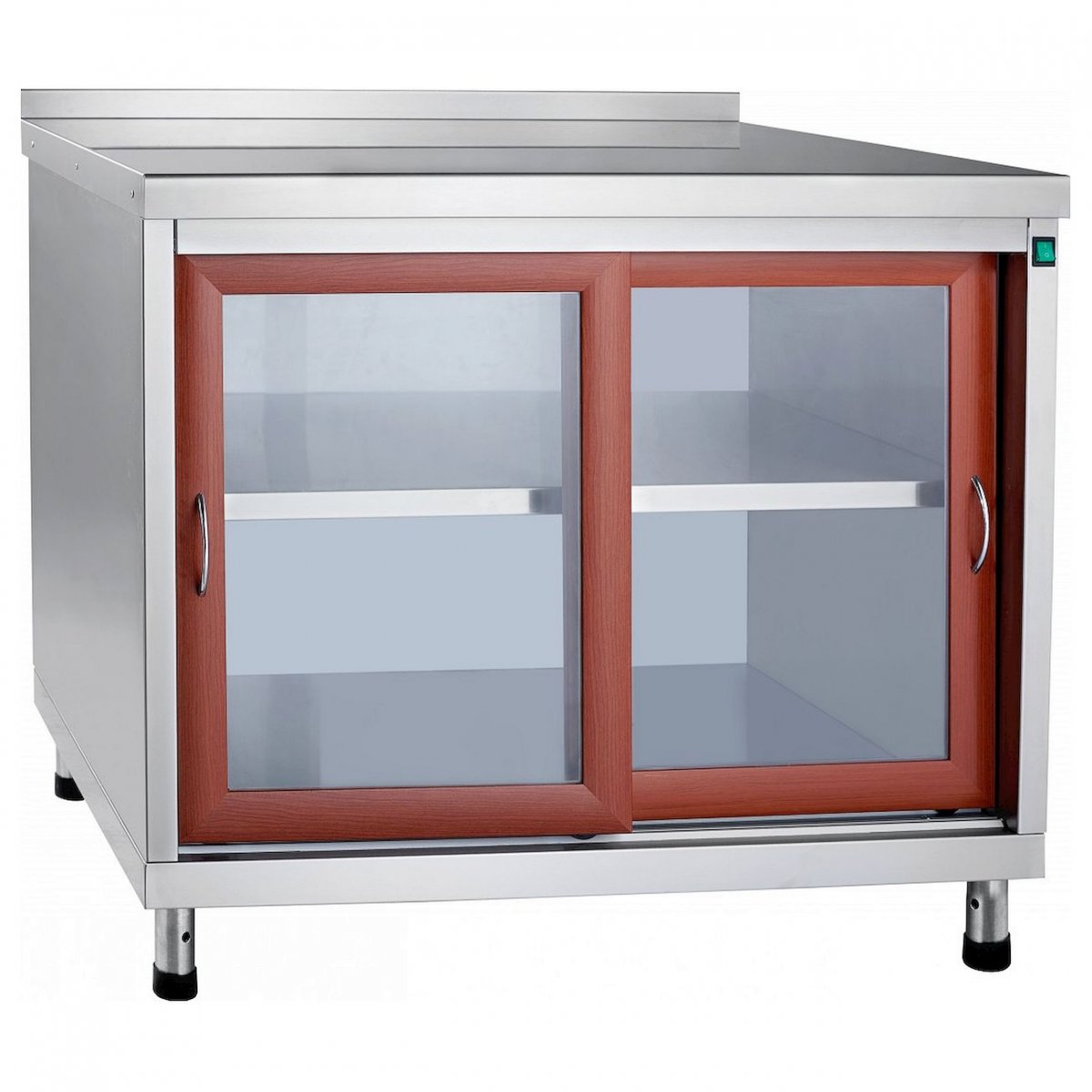 В столе-тумбе имеется подсветка. Ножки стола регулируются по высоте. Все детали стола-тумбы купе Abat СТК-2Д изготовлены из нержавеющей стали, а двери – из МДФ.