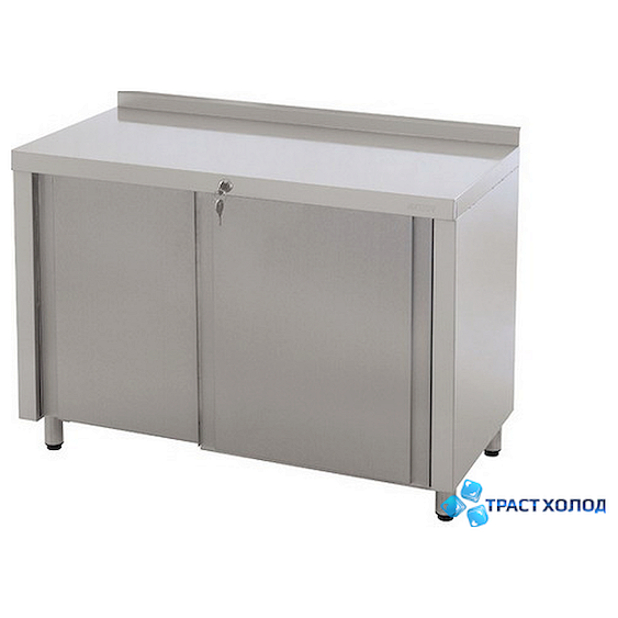Стол-тумба, с бортом, двери "-купе"- СТ-3/1200К-Н сделан специально для использования на предприятиях общественного питания. Стол-тумбу удобно использовать для хранения продуктов в индивидуальной упаковке и кухонной утвари. Стол имеет 2 дверцы-купе. Столешницу можно использовать для сервировки блюд, разделки продуктов или как подставку для кухонного оборудования. У стола имеется бортик.