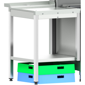 Столы входной-выходной (загрузки-выгрузки корзин) универсальный для купольной посудомоечной машины LM-C предназначенных для приема корзин с чистой посудой после мытья и используются на предприятиях общественного питания в качестве вспомогательного оборудования. Стол используется в комплекте с посудомоечной машиной. Крепление к посудомоечной машине осуществляется с помощью верхнего зацепа и нижних винтов. Путем несложного монтажа стол можно установить как в левом, так и в правом исполнении. Стол имеет разборную конструкцию и регулируемые по высоте ножки (не менее 20мм). Каркас стола изготовлен из нержавеющей стали.