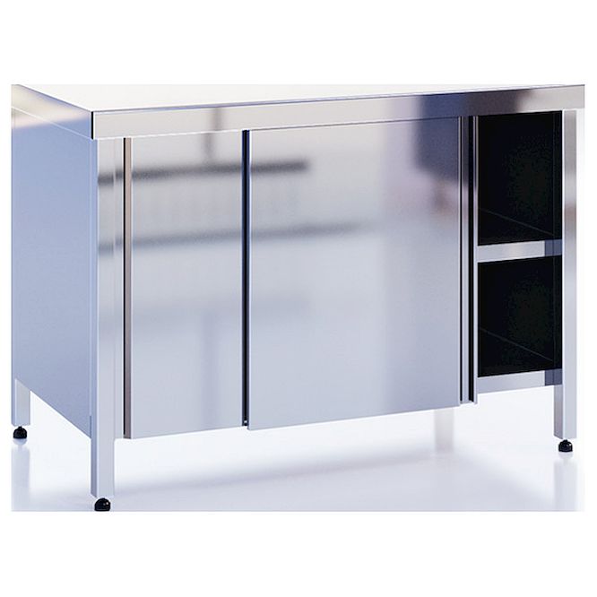 Стол закрытый CRYSPI СРЦ Ш Р (L=1200, S=600, H=850-870, СПД) предназначен для разделывания и обработки пищевых продуктов, а также для раскатки теста на предприятиях общественного питания и торговли. Стол изготовлен из шлифованной нержавеющей стали AISI 430, каркас выполнен с применением профильной трубы, столешница усилена листом ЛДСП.